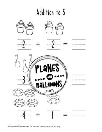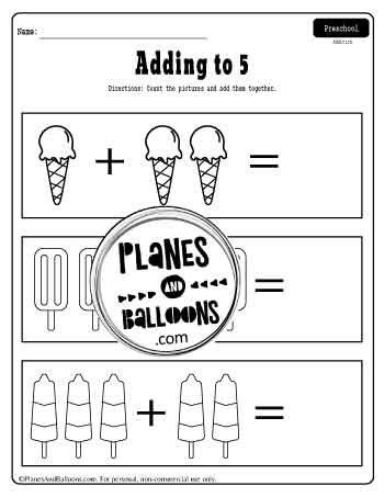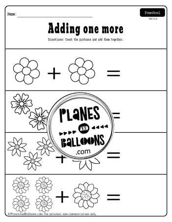First, you might want to use physical objects such as toys or blocks to help your kids grasp the idea of adding things together. Then you can move on to worksheets with pictures.